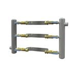 Kehikko kylmävesimittareiden rinnakkainkytkentään. Pyöreät, haponkestävät putket. Saatavana myös takaiskuventtiilillä varustettuna.