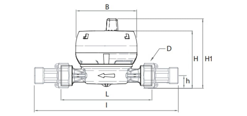 Enkeltstråle vannmåler, digitalt display med 8 sifre Induktiv overføring. Produsert i versjoner for kaldt vann og varmt vann i diameterene DN15 - DN50. 360° roterende skive. WM-Bus og/eller LoRa integrerte overføringsmoduler. Ekstern modul for M-Bus-kommunikasjon tilgjengelig.