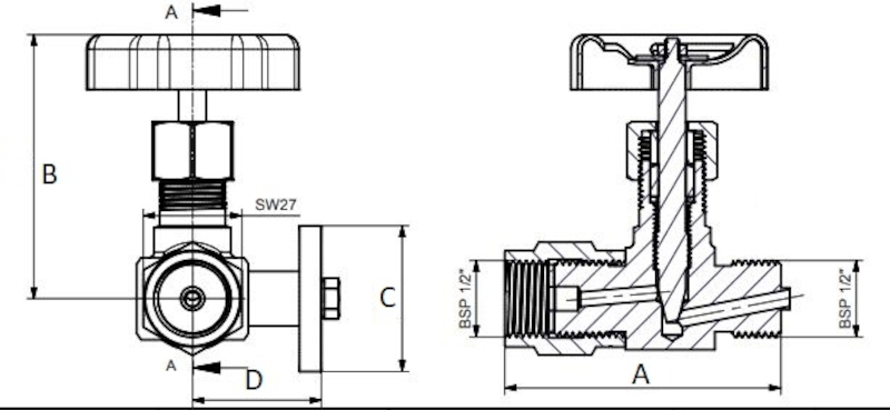 Ventilene har innvendige og utvendige spindelgjenger med stigende spindel og hÄndhjul. TrykkmÄlerventilen har hÞyre- og venstregjenger og en kontrollflens.