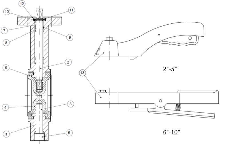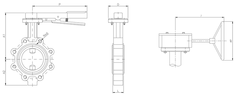 Dreiespjeldventil med lug flenser i GGG40 materiale med EPDM pakning. Ventilen har split shaft for redusert trykktap over ventilen og leveres med manuelt håndratt