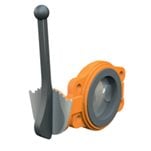 Eurovalve heltettende dreiespjeldventil, flensutførelse med NBR gummiforing vulkanisert i huset, også egnet for vakuum og som endeventil mot hele ventilens PN, med håndspak eller snekkegir.