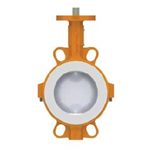 Centriskt lagrad vridspjällventil med PTFE coatad spjällskiva och foder för avstängning och reglering av aggresiva och frätande vätskor samt applikationer med höga renhetskrav.