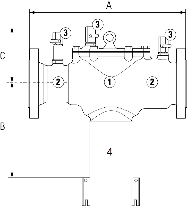 Skyddsdon typ BA (Resideo BA300-A) med flänsad anslutning för vätskekategori 4 enligt SS-EN 1717.
