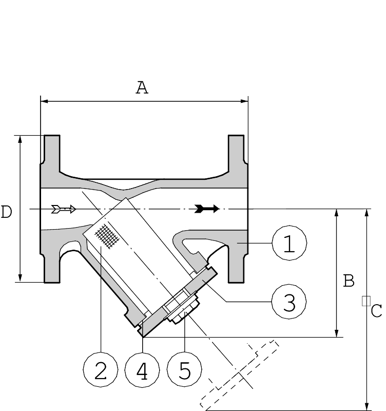 Smutsfilter av rostfritt syrafast stÄl med flÀnsar. Silinsats av rostfritt stÄl. För köldbÀrarsystem, havsvatten, aggressiva vÀtskor och gaser. Separat silkorg med annan maskvidd kan bestÀllas.