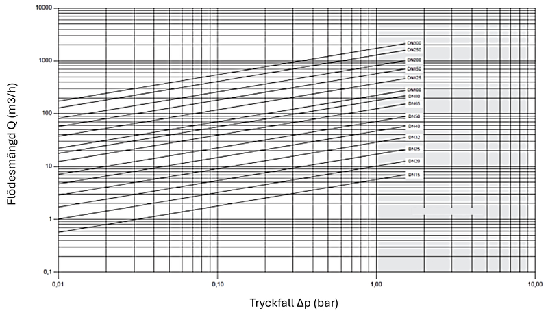 | DimensionsomrÄde (DN) | 15 - 250 |