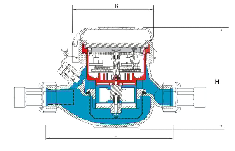 VattenmÀtaren Àr en torrlöpande, flerstrÄlig vinghjulsmÀtare. MÀtaren har en mÀtnoggrannhet pÄ R100 i horisontellt lÀge med siffertavlan uppÄt. I övriga positioner, som vertikalt eller horisontellt lÀge med siffertavlan Ät sidan, har mÀtaren en noggrannhet pÄ R50. MÀtarens huvuddelar bestÄr utav ett silfilter i inloppet pÄ mÀtaren för att fÄnga upp smuts och partiklar i vattnet. Centralt i mÀthuset sitter turbinkammaren med flerstrÄlig funktion in till vinghjulet. Vinghjulets rörelse överförs frÄn den hydrauliska delen via magnetkoppling till rÀkneverket i den torra delen. MÀtarens tavla bestÄr av fem siffertrissor som visar förbrukningen av kubikmeter. För högre upplösning finns indexvisare lÀngst ner pÄ tavlan med upplösningarna 100, 10 och 1L.
