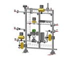 Kundanpassat ventil och instrument system för flödesfördelning med reglering och mätning.